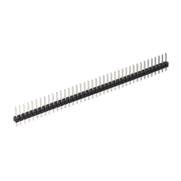 As barras de pinos podem ser quebradas na quantidades de pinos que o seu projeto necessita, tornando-se um conector muito versátil. O passo é 2,54mm, e o comprimento dos pinos de 11,2mm.