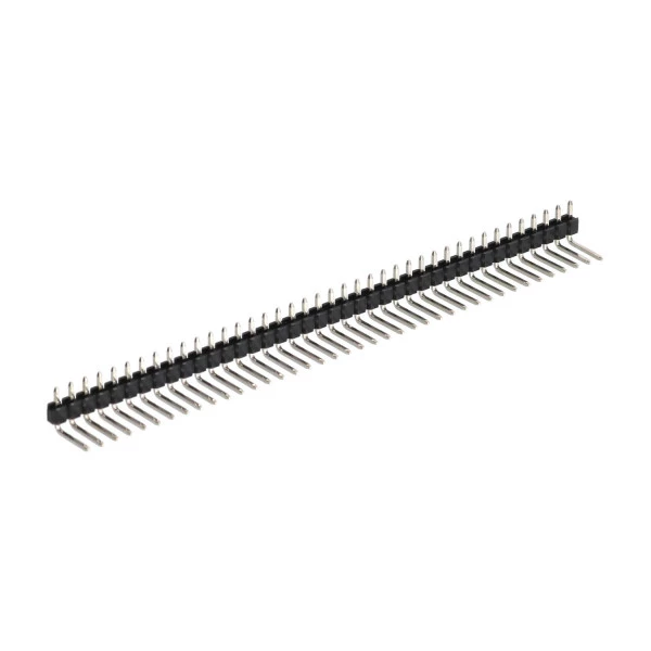 As barras de pinos podem ser quebradas na quantidades de pinos que o seu projeto necessita, tornando-se um conector muito versátil. O passo é 2,54mm, e o comprimento dos pinos de 15mm, do lado que não tem o isolamento plástico.