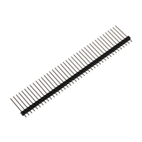 As barras de pinos podem ser quebradas na quantidades de pinos que o seu projeto necessita, tornando-se um conector muito versátil. O passo é 2,54mm, e o comprimento dos pinos de 20mm.