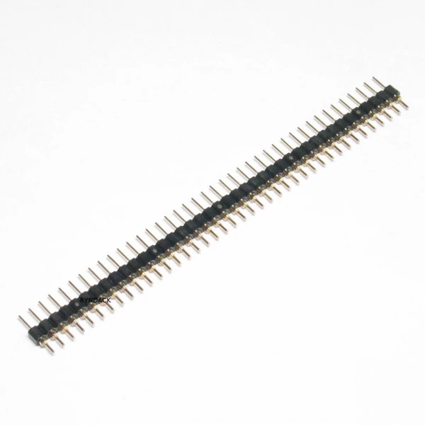 As barras de pinos podem ser quebradas na quantidades de pinos que o seu projeto necessita, tornando-se um conector muito versátil. O passo é 2,54mm, e o comprimento dos pinos de 11,96mm.