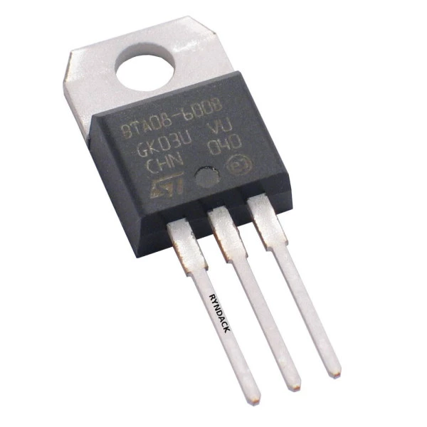 O BTA08-600C TRIAC 600V 8A é um rele de estado solido, que pode ser utilizado no lugar de um rele mecânico. Ele é composto internamente por dois tiristores ligados em anti paralelo com gatilhos interligados, quando um pulso é disparado no gatilho, os dois tiristores conduzirão permitindo a passagem de corrente nos dois sentidos, realizando assim o controle do acionamento de cargas em circuitos.