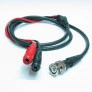 Esse cabo apresenta um conector BNC macho em uma extremidade podendo ser usado em geradores de funções para a realização de testes, além disso, ele possui bornes banana presentes na outra ponta, um dos conectores mais populares em equipamentos de bancada.