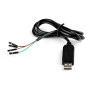 O cabo conversor USB TTL apresenta o chip PL2303, que permite o interfaceamento entre microcontroladores e outros tipos de dispositivos que realizem comunicação serial, com dispositivos que apresentam portas USB. Ele apresenta um cabo de 90cm e em uma de suas entradas 4 ponteiras do tipo fêmea, sendo eles vermelho (Vcc), preto (GND), branco (RX) e verde (TX).