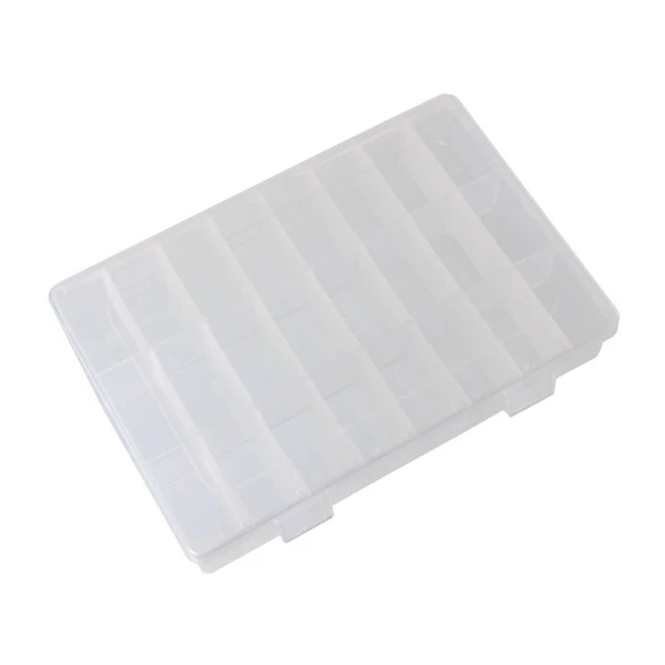 A Caixa Organizadora de 24 divisórias tem como objetivo, o armazenamento e organização de componentes eletrônicos ou peças pequenas. Suas divisórias são removíveis visando uma melhor acomodação dos componentes. Cada divisória tem aproximadamente 4cm*2cm (LxC).