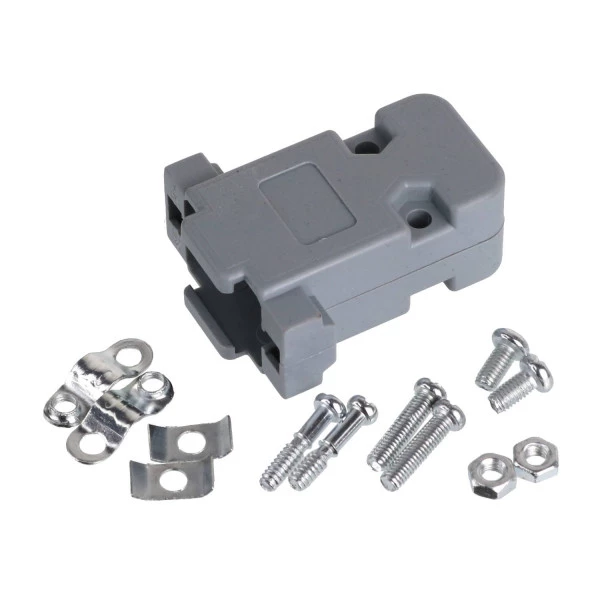 Essa capa é indicada para o acabamento da conexão elétrica dos conectores DB9 quando soldados em cabos. Ela acompanha o kit de retenção, que são parafusos e peças metálicas que travam o cabo e o conector DB9.