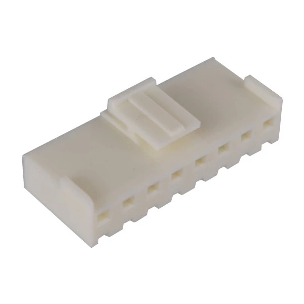 Os conectores KKzão com trava são conectores versáteis, pois possuem versões com diversos números de vias e conectores para placa de circuito impresso de 180° e 90°. O passo (distância entre os pinos) do conector KKzão com trava é 3,96mm. Deve ser crimpar o terminal ao condutor e inserir nesse alojamento.