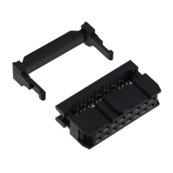 Os conectores do tipo latch são conectores para a conectorização de cabos flat. Para esse conector, o passo de flat deve ser de 1,27mm, e ele deve ser crimpado por pressão no cabo.