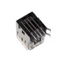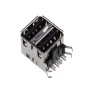 O conector duplo é ideal para montagem em placa de circuito impresso a 90°, sendo capaz de se comunicar com dois dispositivos simultaneamente.
