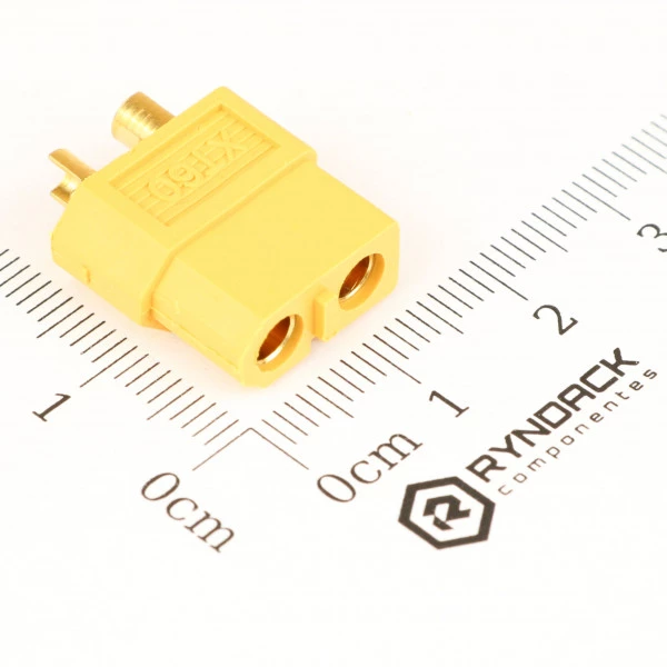 O XT60 é um tipo de conector comumente utilizado em drones, aeromodelos e outros que usam baterias de LiPO, e que precisam ter uma capacidade de corrente elevada. Seus contatos são desenvolvidos para terem a menor resistência possível, e com isso, menores perdas e menos aquecimento.