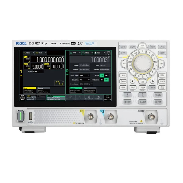 O gerador de funções DG821 Pro da RIGOL apresenta um visual compacto e intuitivo, em um aparelho completo e robusto. Sua portabilidade e sua alimentação por meio de usb tipo C fazem com que ele seja ideal tanto para testes em campo quanto testes em bancadas, economizando espaço.