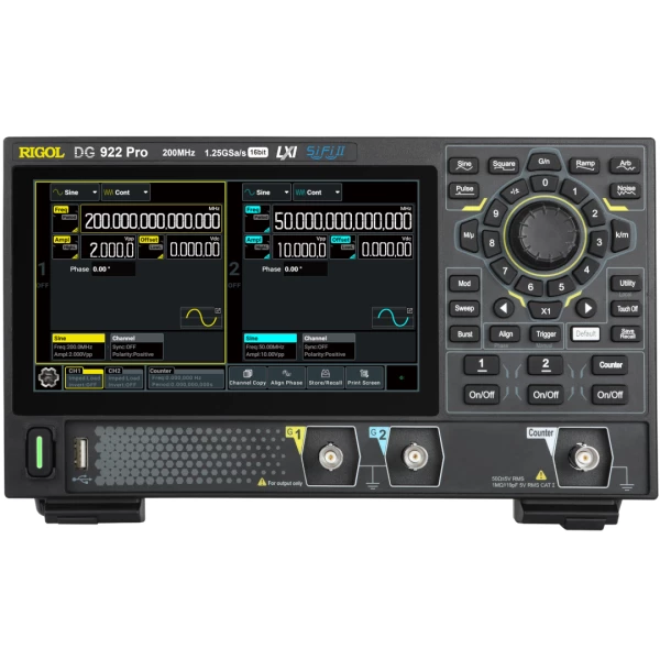 O gerador de funções DG922 Pro da RIGOL apresenta um visual compacto e intuitivo, em um aparelho completo e robusto. Sua portabilidade e sua alimentação por meio de usb tipo C fazem com que ele seja ideal tanto para testes em campo quanto testes em bancadas, economizando espaço.