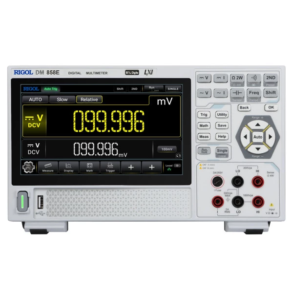 O multímetro digital DM858 da RIGOL é um equipamento compacto, mas completo, ideal para realização de medidas em bancadas. Ele conta com uma tela LCD de 7 polegadas sensível ao toque que possibilita uma navegação rápida e prática pela sua interface gráfica.
