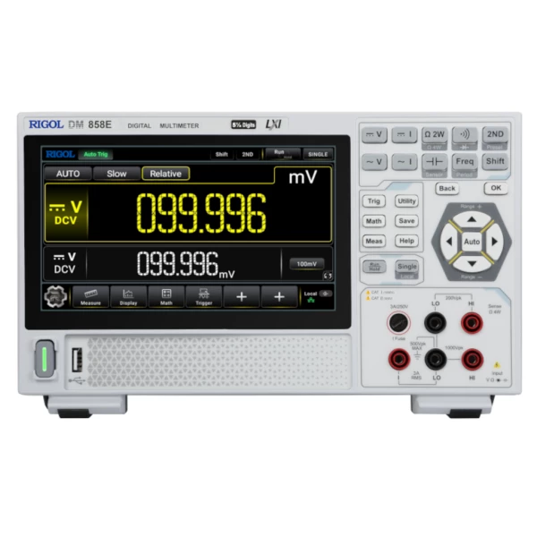 O multímetro digital DM858 da RIGOL é um equipamento compacto, mas completo, ideal para realização de medidas em bancadas. Ele conta com uma tela LCD de 7 polegadas sensível ao toque que possibilita uma navegação rápida e prática pela sua interface gráfica.