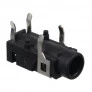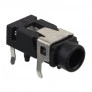 Jack J2, estéreo, para montagem em placa de circuito impresso. Possui 4 pinos, sendo 2 deles do mesmo sinal.