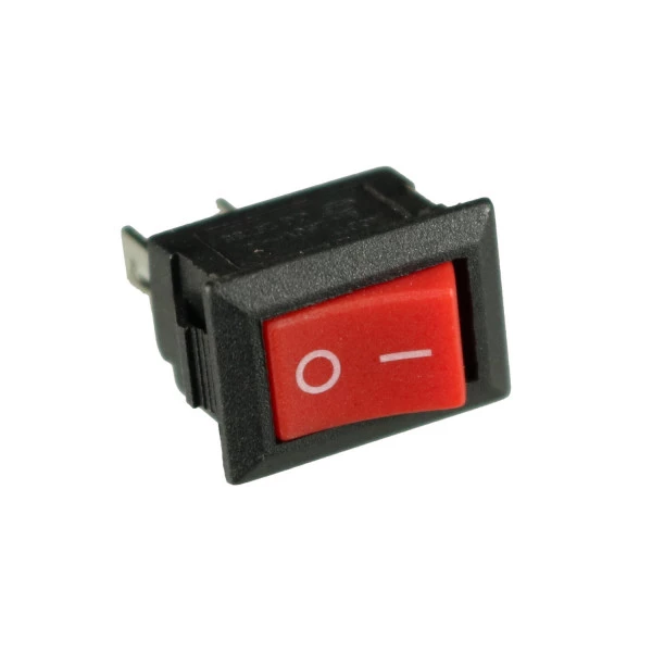 Chave gangorra liga/desliga fabricada em material plástico, com dois terminais, normalmente aberta (quando acionada fecha o circuito).