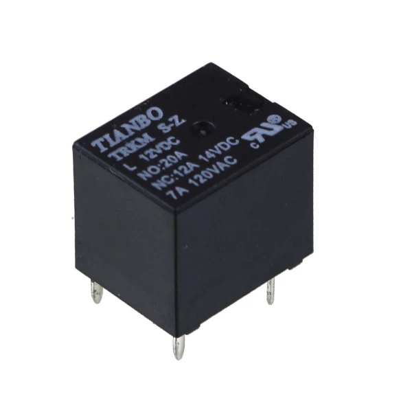 O TRKM S-Z é um relê da Tianbo com 5 pinos, tensão de bobina de 12V e corrente máxima de 20A.