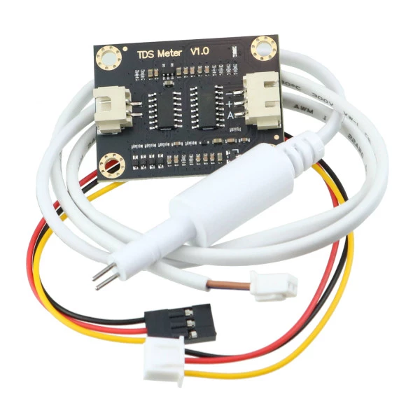 O módulo medidor de qualidade da água realiza medidas da quantidade de partículas dissolvidas em água por meio da sua condutividade elétrica. Esse dispositivo pode ser aplicado em diversas situações, que vão desde o monitoramento da qualidade da água em aquários até o ajuste de nutrientes dissolvidos em água na hidroponia.