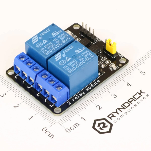 Esse módulo possui dois relês, e todo o circuito para o acionamento deles, podendo ser conectado diretamente às portas de saída do microcontrolador. Ele também possui dois LEDs indicativos, que indicam se os relês estão acionados. Com os relês desse módulo você pode fazer acionamento de diversos tipos de carga, tais como lâmpadas, motores, equipamentos elétricos em geral.