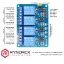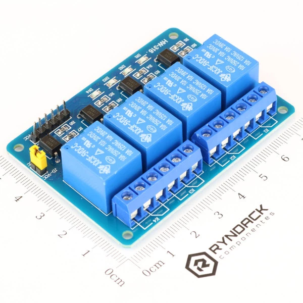 Esse módulo possui quatro relês, e todo o circuito para o acionamento deles, podendo ser conectado diretamente às portas de saída do microcontrolador. Ele também possui dois LEDs indicativos, que indicam se os relês estão acionados. Com os relês desse módulo você pode fazer acionamento de diversos tipos de carga, tais como lâmpadas, motores, equipamentos elétricos em geral.