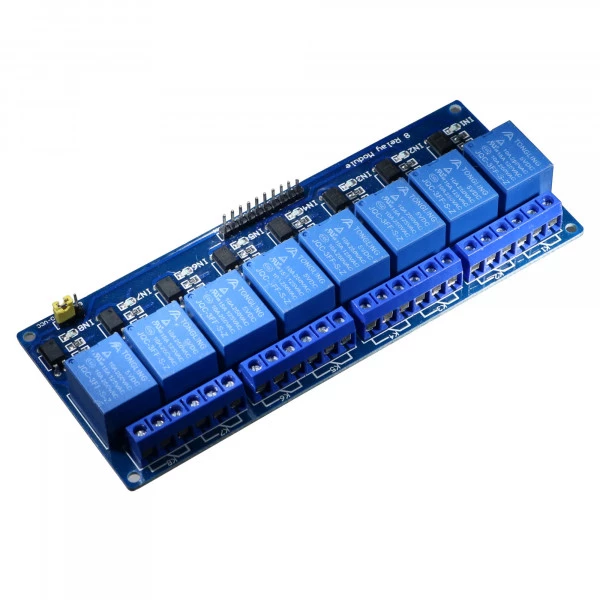 O módulo de relê 8 canais com optoacoplador, possui 8 canais (8 relês independentes), também possui um led para indicar o funcionamento. Este módulo permite a integração com vários microcontroladores como arduinos, AVR, PIC, ARM.
