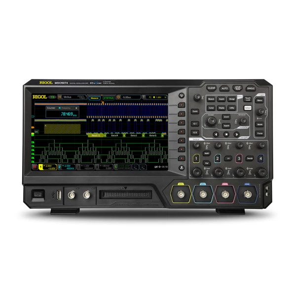 O osciloscópio digital MSO5074 da RIGOL é um equipamento robusto e versátil. Ele pode ser usado como um analisador lógico de 16 canais e 4 canais analógicos, o que permitem a aquisição dos mais variados sinais. A taxa de amostragem de 8GSa/s e a largura de banda de 70MHz aliados a sua tela 9" permitem a obtenção e a visualização das mais diversas formas de onda, com clareza e precisão.