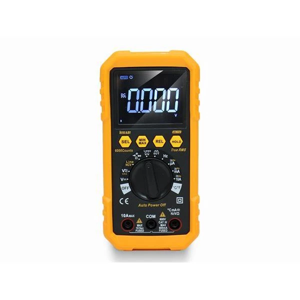 O multímetro digital HM--1700 da Hikari é um equipamento compacto, robusto e preciso, com um display de 3 5/6 dígitos EBTN. Ele pode ser usado para a realização de medições de corrente AC/DC, tensão AC/DC, resistência, capacitância, temperatura, entre outros. Esse multímetro também é do tipo TRUE RMS, o que garante a medida dos valores eficazes corretos de tensão e corrente AC. O seu uso é simplificado com a função Auto Range, e Auto Power Off, que alteram a faixa de medição automáticamente e desliga o dispositivo quando em desuso, poupando bateria.