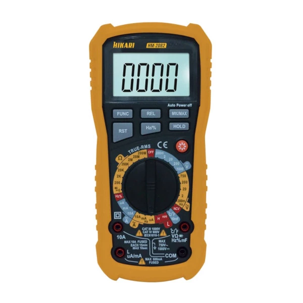 O multimetro digital HM-2082 Hikari True RMS tem como principais funções medir tensão DC/AC, corrente DC/AC, resistência, capacitância, indutância, frequência, Duty Cycle, temperatura e testes de diodo e continuidade. Apresenta como funções adicionais: medidas AC True RMS, NCV, Data Hold, relativo, máximo e mínimo, iluminação do display e indicador de bateria fraca. Sua estrutura adota um holster protetor que se molda ao gabinete do instrumento. Pode ser usado em medições em circuitos eletrônicos, circuitos de ramificação e na indústria.