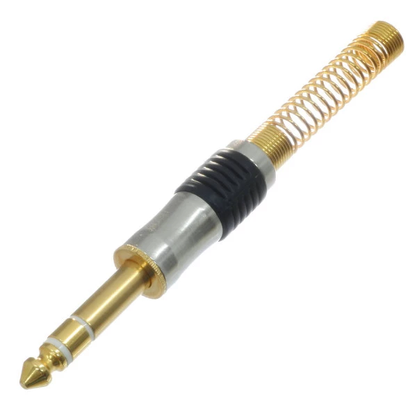 O plug p10 estéreo para solda em cabo com altíssima qualidade. Acabamento dourado banhado a ouro, para um melhor contato.