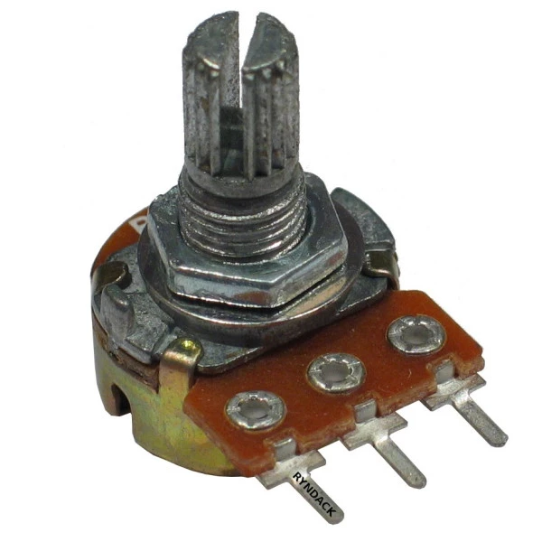 Os potenciômetros são resistores variáveis, com uma ampla utilização em circuitos em geral para ajuste, tem como uma das suas principais funções o controle de volume, balanço e outras aplicações em áudio. Este componente possui 3 terminais, ele é do tipo linear, ou seja, a variação de resistência é linear.