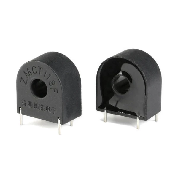 O ZMCT118F é um sensor de corrente não invasivo com faixa linear de até 30A em corrente alternada, podendo ser usado em diversas aplicações como medidas de correntes e proteção de equipamentos, se destacando por sua capacidade de realizar medidas precisas, podendo ser usado com o auxilio de um circuito externo em microcontroladores como Arduino, Raspberry, etc. O ZMCT103C atua como um transformador, sendo que seu primário deve ser um fio passando furo, e as saídas do secundário são os pinos.