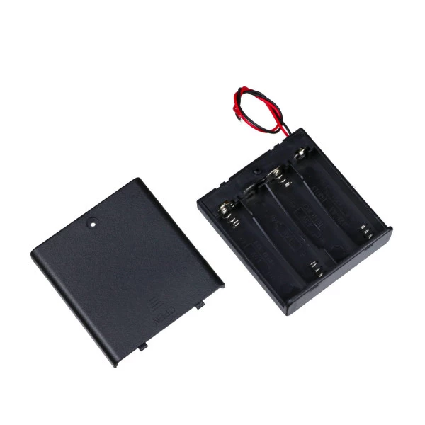 Se o seu projeto necessita de uma alimentação a pilhas, certamente você precisará de um suporte para pilhas. Esse modelo possui o plástico reforçado, e as conexões elétricas de boa qualidade, eliminando mau contatos ou dificuldade na troca das pilhas. Ele também possui chave liga/desliga que pode ser a chave geral do seu projeto, e uma tampa que protege as pilhas, não deixando elas expostas.