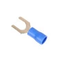 Terminal forquilha usado em instalações elétricas. Esse terminal deve ser usado com condutores entre 1,5 a 2,5mm² de seção, e tem a largura/diâmetro do rasgo de 5,3mm.