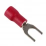 Terminal forquilha usado em instalações elétricas. Esse terminal deve ser usado com condutores entre 0,5 a 1,5mm² de seção.