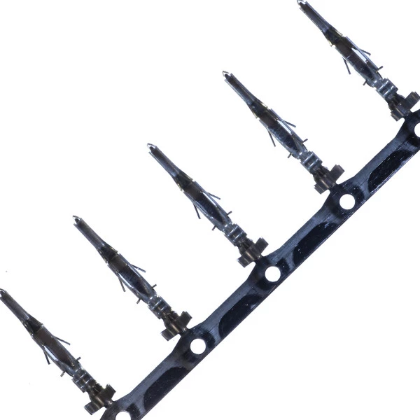 Os conectores mini fit são conectores robustos que suportam até 5A e 600V. São muito versáteis, pois possuem versão para cabo e para placa. Esse terminal deve ser crimpado e inserido no alojamento mini fit fêmea.