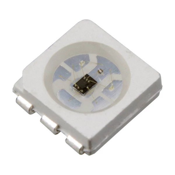 O WS2812 é um LED que possui controle digital, pois internamente possui um circuito integrado que faz o controle de 3 LEDs, nas cores vermelho, verde e azul. Com essa configuração, é possível controlar o brilho de cada cor individualmente, e gerar qualquer cor.